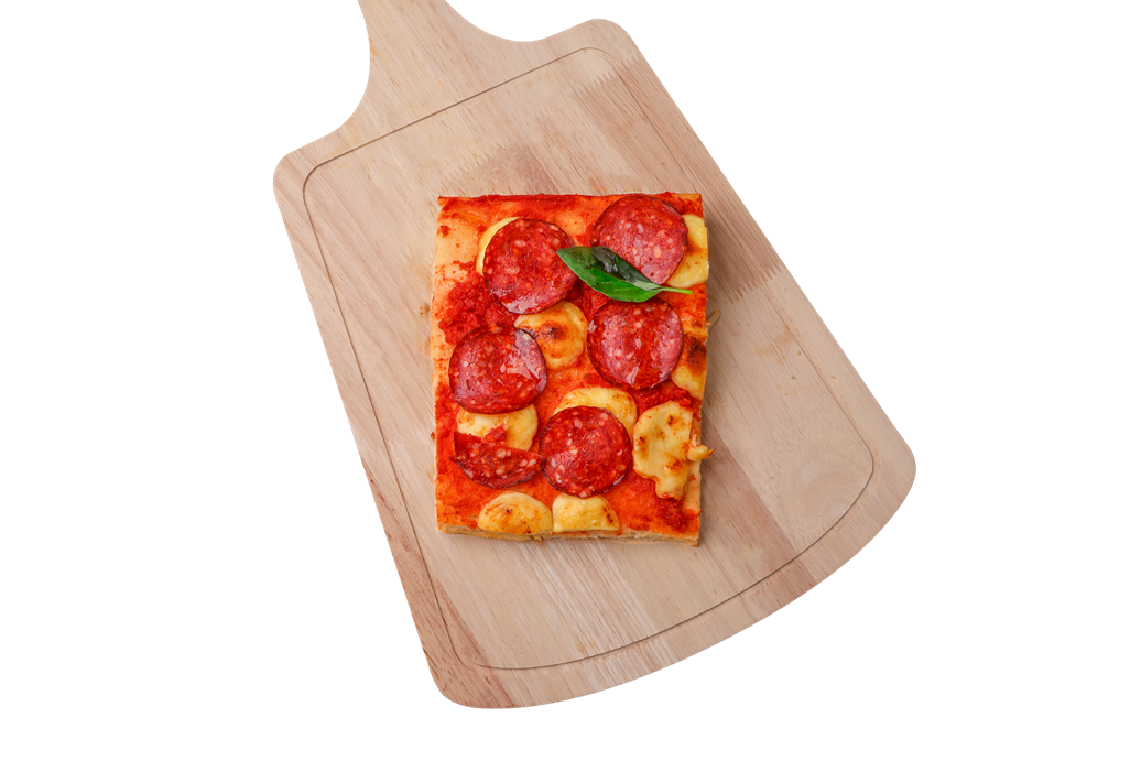 Состојки: Тесто (брашно,вода,квасец,сол), пелат, кашкавал, свински в рат, домат, маслиново масло